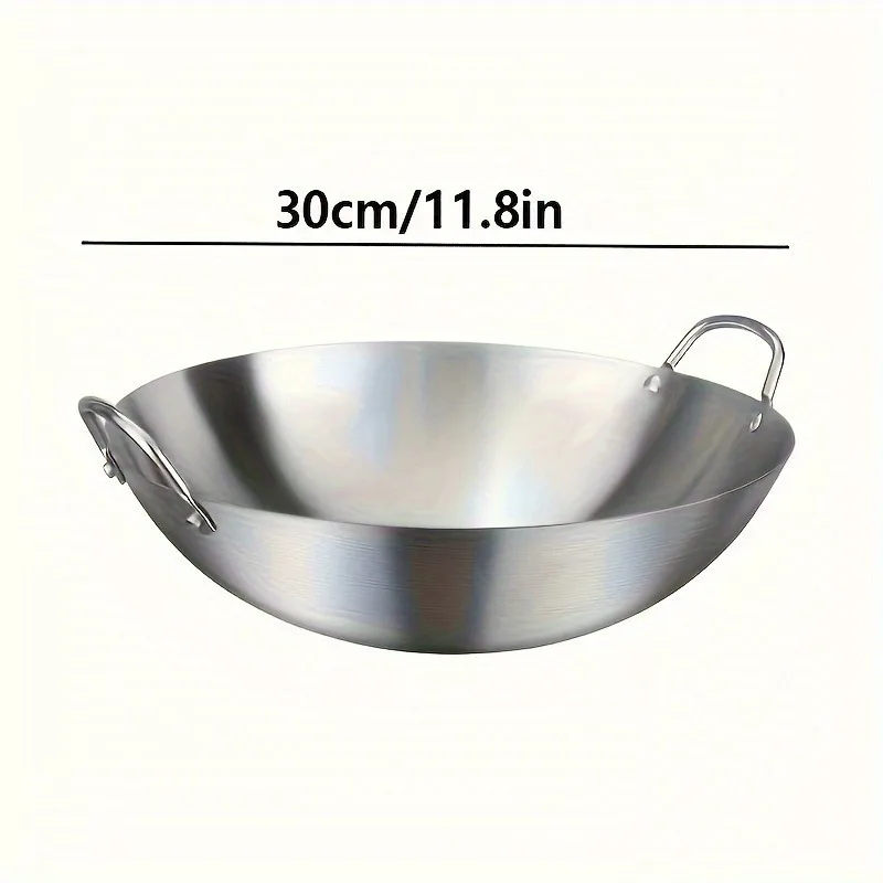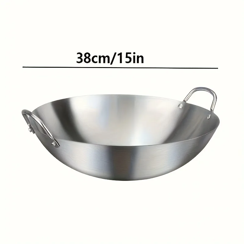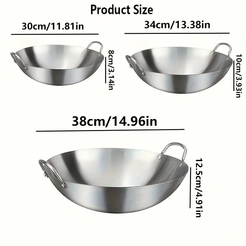 Welcome to Maison Essentials co. This large stainless steel wok is built for demanding cooking tasks.